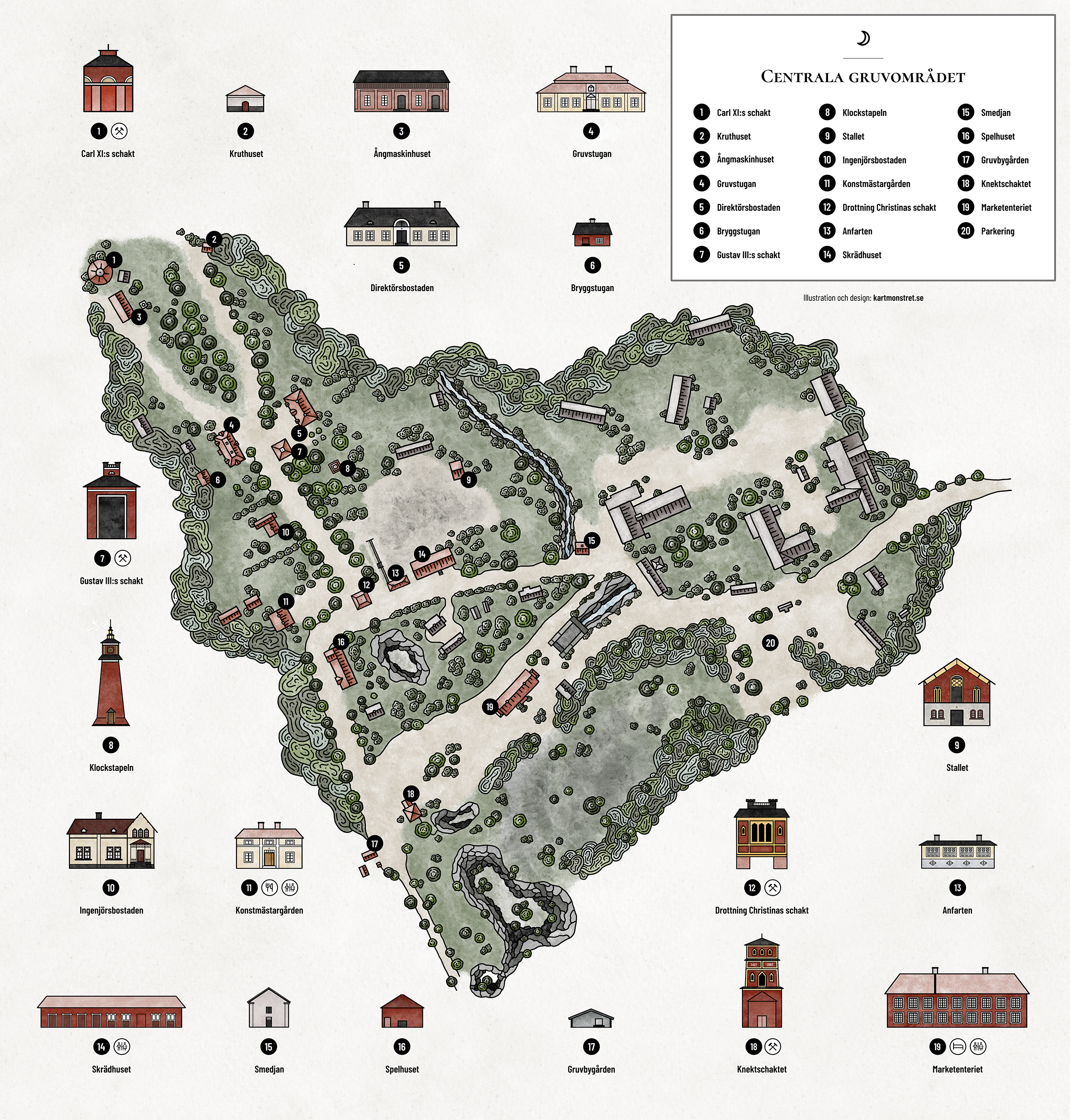 På 1500-talet brukade kung Gustav Vasa kalla Sala Silvergruva för "Sveriges skattkista”. Jag anlitades för att rita två kartor över det centrala området och en karta över gruvans omgivningar.