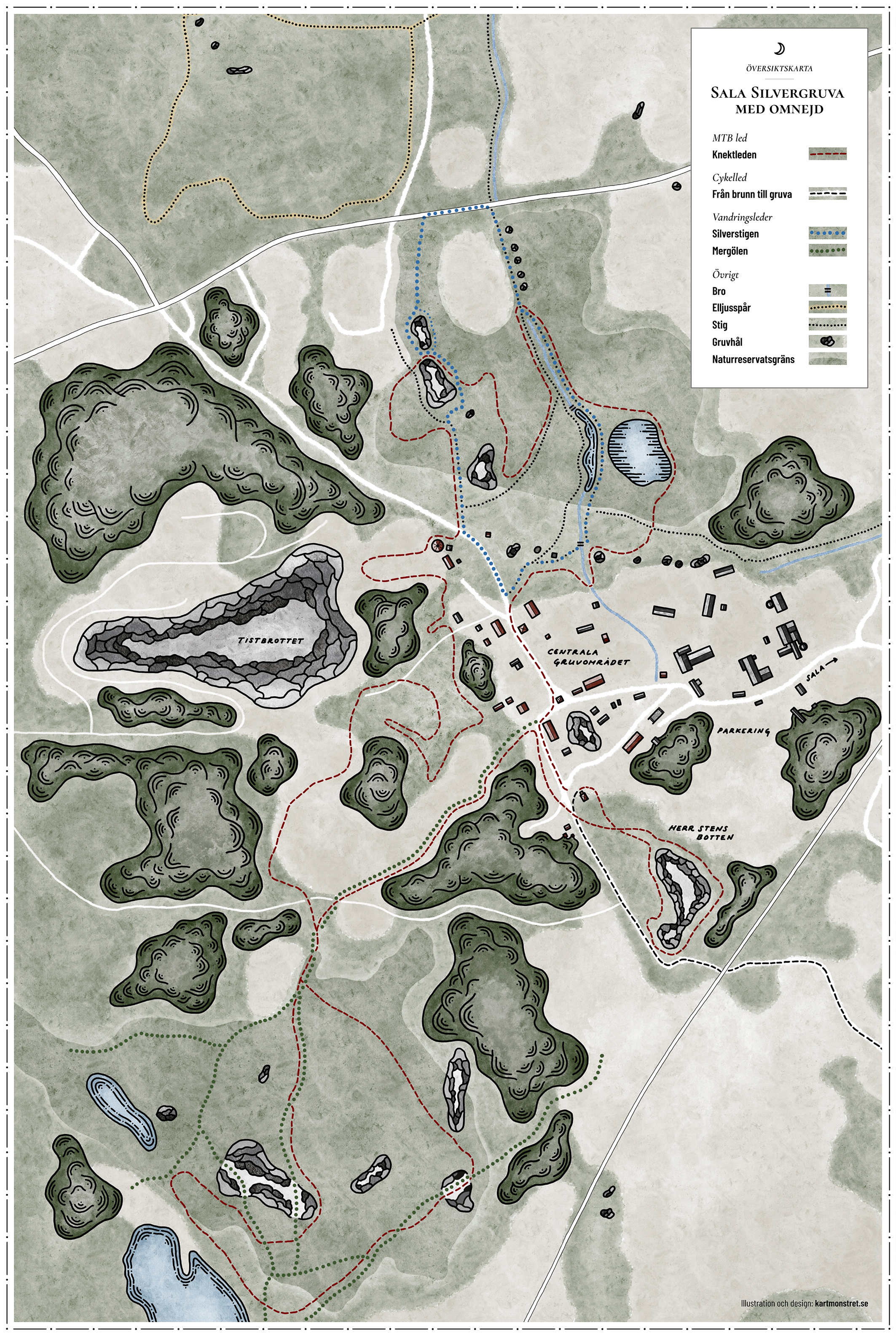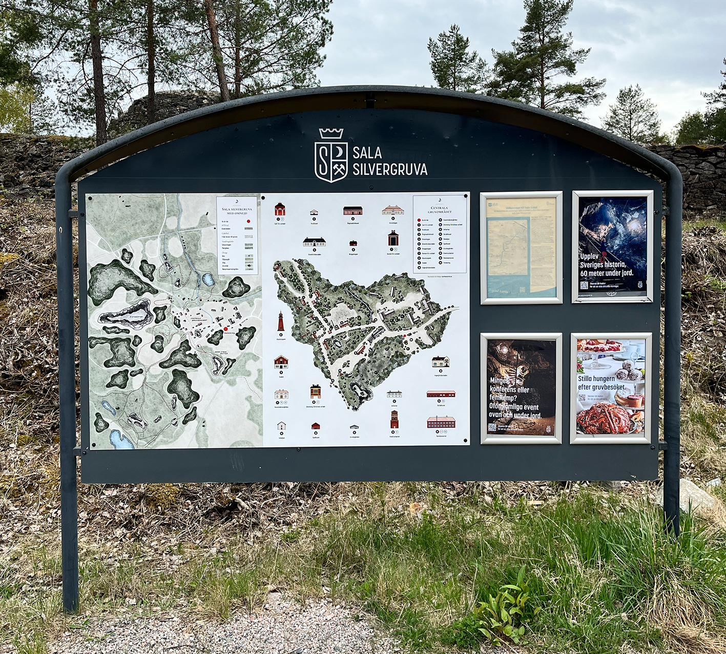 Sala Silvergruvas vackra läge och omgivningar lockar tusentals besökare från hela världen årligen. Mitt jobb var att rita två kartor som skulle sättas upp som navigationsskyltar för besökare som kommer till gruvan: